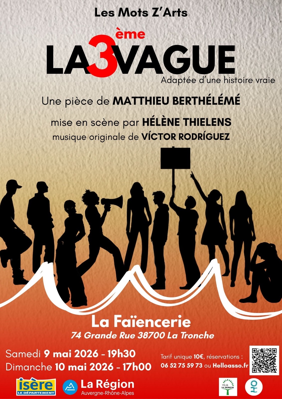 L'association Les Mots Z'Arts vous présente le spectacle La 3ème Vague les samedi 9 mai à 19h30 et dimanche 10 mai à 17h00 à La Faïencerie.